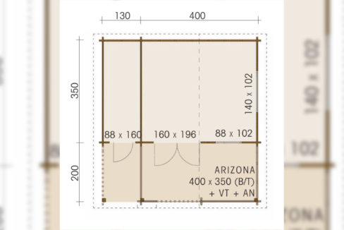 Pièce annexe: 130 cm avec porte pleine semi arrondie,