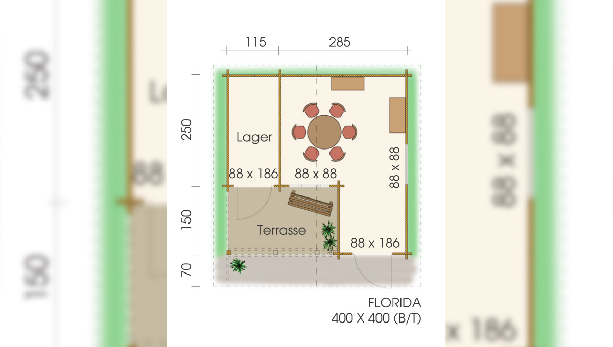 Avec des dimensions de 400 x 400 cm, ce chalet est parfait pour vos escapades en pleine nature. Sa structure