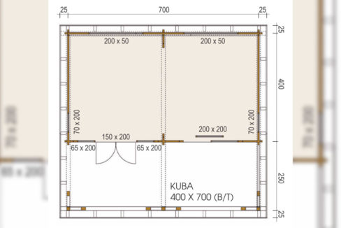 Imaginez un chalet en bois où l’intérieur et l’extérieur se confondent… Le Chalet KUBA, avec ses 400 x 700 cm et sa terrasse couverte de 250 x 700 cm, vous offre un espace habitable de 28 m², prolongé par 17,5 m² de terrasse pour profiter de la nature en toute saison.
